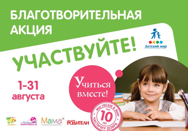 Цель благотворительной акции – собрать необходимую помощь к новому учебному году для детей из социальных учреждений, детей-сирот, инвалидов и многодетных семей. Акция проходит во всех магазинах сети.