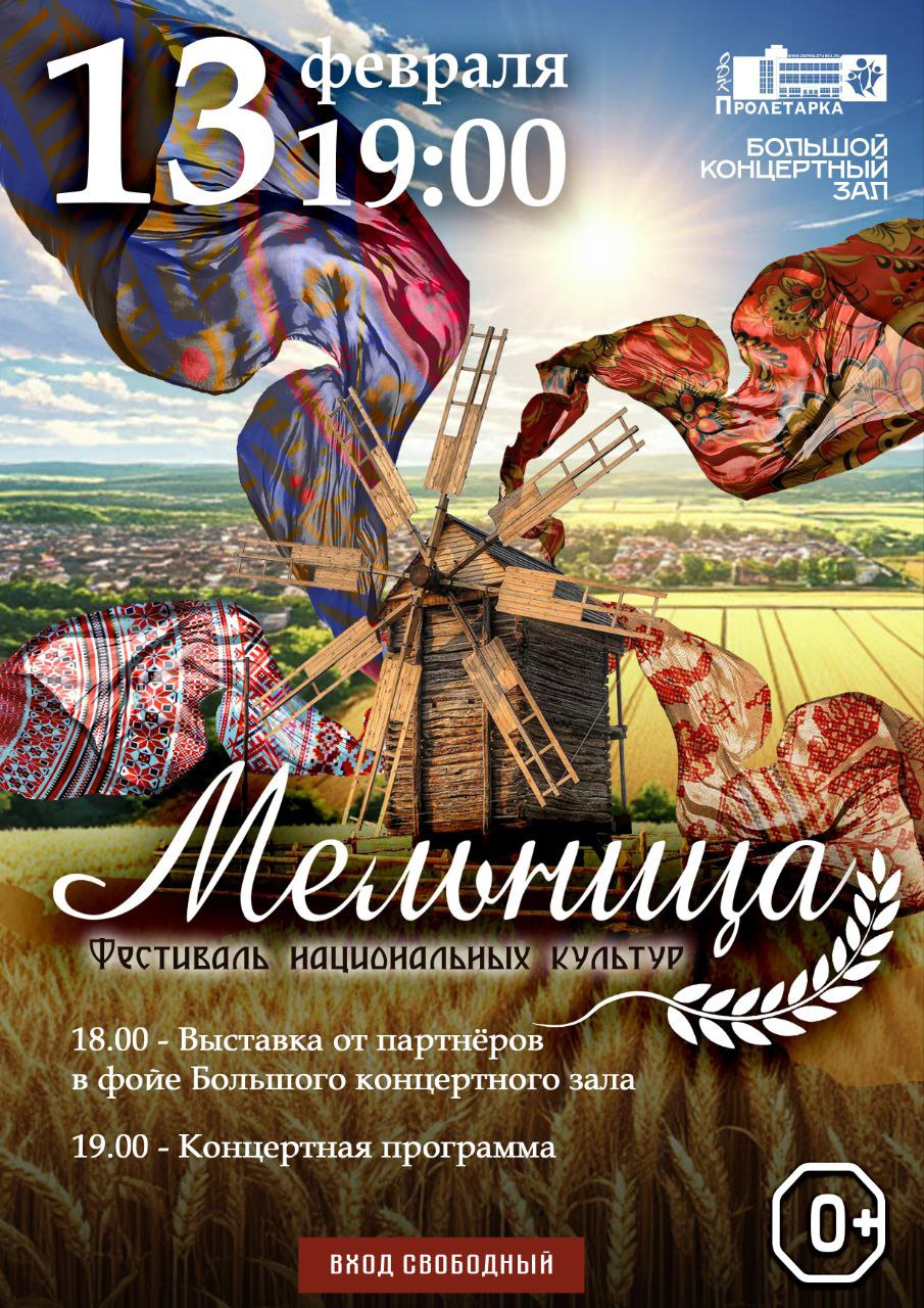 По доброй традиции, 13 февраля 2026 года в 19.00, в Тверском областном Дворце культуры «Пролетарка» пройдет юбилейный пятый Фестиваль национальных культур «Мельница». «Мельница» - это творческая дружба, культурные связи и добрососедские отношения представителей разных народов, где нет своих и чужих, где вместе творят добро. Уже пятый год фестиваль национальных культур «Мельница» является одной из визитных карточек Тверского областного Дворца культуры «Пролетарка». За час до мероприятия, в 18.00, в фойе Большого концертного зала развернется выставка народных промыслов и предметов быта, красочных национальных костюмов и уникальных музыкальных инструментов, образцов живописи и литературы народов России. В продолжение лучших фестивальных традиций, сменяя друг друга, уже в 19.00, на сцену
