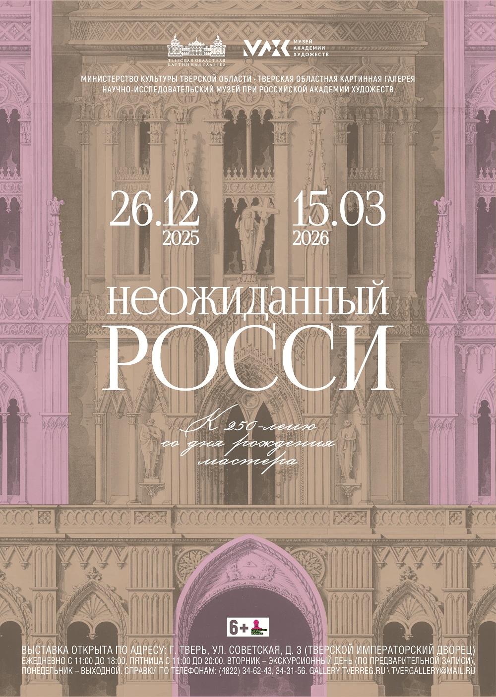 Тверская областная картинная галерея сообщает о том, что с 26 декабря 2025 – 15 марта 2026 в императорском дворце будет работать выставка, посвященная Карлу Ивановичу Росси – одному из отцов стиля ампир в России и автору главных архитектурных ансамблей Александровского и Николаевского Петербурга. Росси связан с Тверью коротким, но насыщенным периодом работы в 1809-1812 годах при дворе великой княгини Екатерины Павловны. Здесь его таланту был дан карьерный старт. Как архитектор в штате Главного директора путей сообщения, а фактически как придворный зодчий Малого двора, он выступил автором множества построек в городе и губернии и, что особенно важно для Тверской областной картинной галереи, оказал решающее влияние на облик императорского дворца, в котором она располагается. Росси не просто одно из имен в ряду великих художников. Он создатель пространства, в котором существует музей, и в этом качестве до сих пор определяет каждый день жизни галереи.