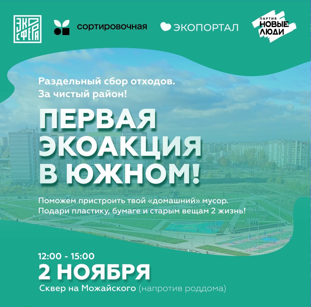 В сквере на Можайского (напротив роддома), 2 ноября с  12:00 до 15:00  состоится первое массовое мероприятие по раздельному сбору отходов. Организаторы предлагают поучаствовать в сортировке и переработке всем желающим.